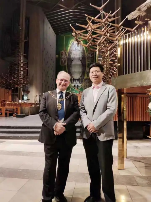 2013级国际经济与贸易专业李家卓与考文垂市长John Blundell合影