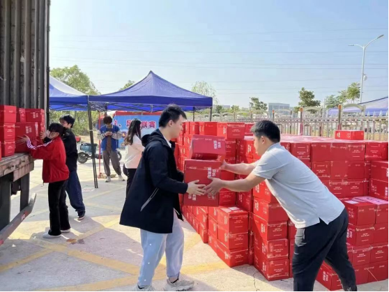 2022年11月8日,在2016届毕业校友梅思思牵线搭桥下,广西轩妈食品有限公司捐赠爱心物资抵达星空下载游戏推荐免费版,人文艺术学院党总支书记兼行政副院长熊海洋老师带队接收捐赠物资。
