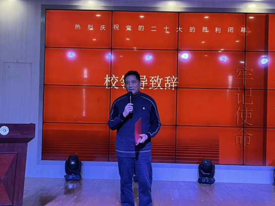 政法学院党总支书记张晓对到场的嘉宾表示欢迎,并提到“我们的党不仅是敢于革命、善于建设、勇于改革的政党,更是信仰法治、坚守法治、建设法治的政党。我们要深入学习贯彻党的二十大精神,坚持党的全面领导,坚定不移走中国特色社会主义道路,为高质量发展提供法治保障。”