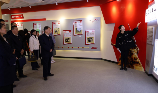 参观江汉大学建设的武汉地区红色文化资源库时,学校研学人员就场馆建设、红色资源融入党建等方面进行了深度调研。江汉大学研究生讲解员为学校参观人员介绍了党史中的武汉和武汉红色文化及全国道德模范、共和国勋章获得者、“感动江大”等人物先进事迹。