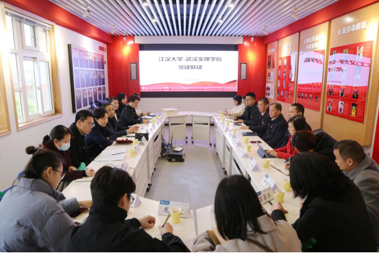 双方联建人员在江汉大学马克思主义学院进行了座谈,江汉大学团委、马克思主义学院分别介绍了江大青年马克思主义培养工程、思政课改革创新及“大思政”建设开展情况。