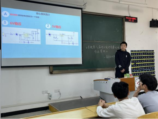 参加讲演展示的同学们自信满满地展示团队的设计思路和参赛心得:认真准备、相互协作、集思广益,发掘亮点,在实践中发现问题、分析问题、解决问题,不断深入问题核心,完善参赛作品。电子创新团队成员从多次参赛的亲身经历展开,分享了学习方法和竞赛经验,引来现场同学的阵阵欢呼。