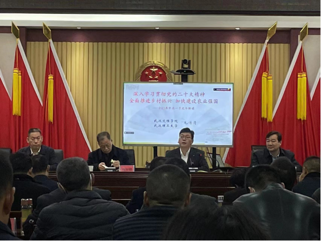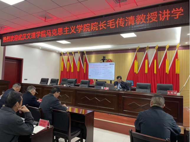 3月23日上午,我校马克思主义学院院长、省委宣讲团成员毛传清教授应邀前往十堰市房县白鹤镇宣讲党的二十大精神。校党委书记杨知勤、党群工作部部长曹灵海和白鹤镇班子成员、全体机关干部、14个村书记、驻村第一书记、镇直单位负责人等100余人聆听了宣讲会。