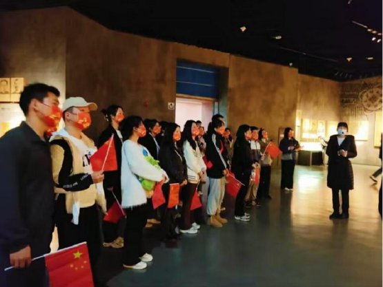 学生党支部书记杨云燕带领全体党员在中国辉煌十年的展映厅重温入党誓词,号召学生党员用信仰驾驭青春航向、用勤学积淀青春力量、用奋斗成就青春事业、用奉献彰显青春风采。