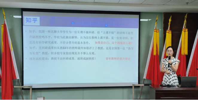 医学院副院长王忆娟副教授以“怎样做好高校科研工作”为主题,围绕“为什么要做科研、我校科研相关政策、民办高校做科研的特点和难点以及如何做科研”四方面进行了详细的阐述,她结合自身科研经历,分享申报项目的方式和技巧,指出科研对青年教师成长的重要意义。她鼓励青年教师尽早走上科研创新之路,明确自身定位,为学校科研贡献自身力量。