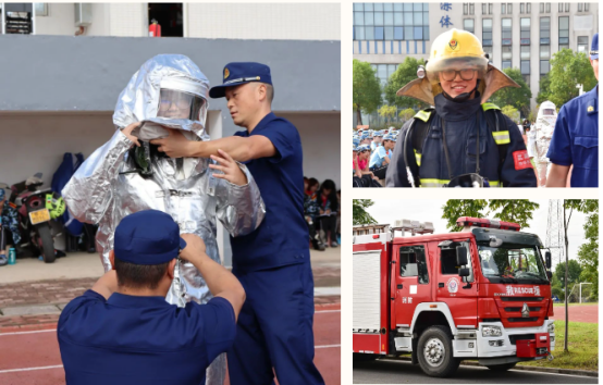 上午8时,武湖消防救援站叶凌佑队长在我校田径场主席台为2023级新生讲解了日常生活中的消防安全常识和遇到火灾逃生时的注意事项。叶凌佑队长亲身上阵,现场模拟煤气罐着火后该如何正确灭火,并对消防救援和灭火的专业器材设备进行了展示,邀请学生上台体验互动。