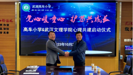 为促进儿童身心健康,助力儿童全面发展,10月25日,我校教育学院与黄陂区高车小学心理共建项目在高车小学举办启动仪式。我校教育学院院长王仕杰、党总支书记兼行政副院长陈龙、教学副院长贺霞、应用心理学系教师和学生代表,高车小学校长刘良强、教学副校长黄云胜、政教主任占丽、教导主任罗秀娟以及该校心理健康专兼职教师参加。