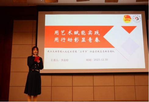 会上,来自2023年暑假托管班优秀志愿科普项目团队、大学生科技助力乡村振兴重点项目团队及团中央2023年“三下乡”社会实践优秀品牌项目的一批大学生团队讲述了投身科普实践的经历及动人故事。我校李鑫婷作为团队代表之一,围绕“用艺术赋能实践,用行动彰显青春”,讲述了我校人文艺术学院“文理小蜜蜂”志愿者团队以专业知识美化乡村,走进社区助力乡村振兴的事迹