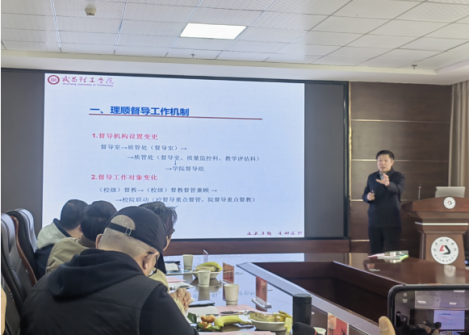 崔清作题为《为学校把关,为师生服务——武昌理工学院教学督导工作经验交流》的报告,从武昌理工教学督导工作发展历程、教学督导工作内容与方式、教学督导工作成效与思考三个方面展开重点介绍该校学习监督与评价的相关制度、监督与评价的标准。