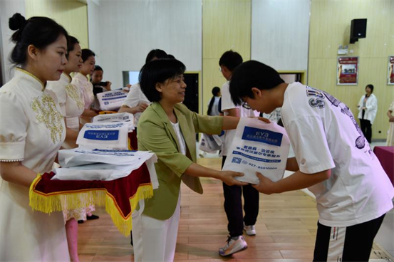 随后,捐赠仪式正式举行,王明光与该医院CEO戚春娇共同完成了捐赠牌的交接。学生代表上台接受了医院的公益眼镜捐赠,受赠学生们纷纷表示将以更加饱满的热情投入到学习中,用实际行动回报这份关爱,并将这份正能量传递给更多的人。
