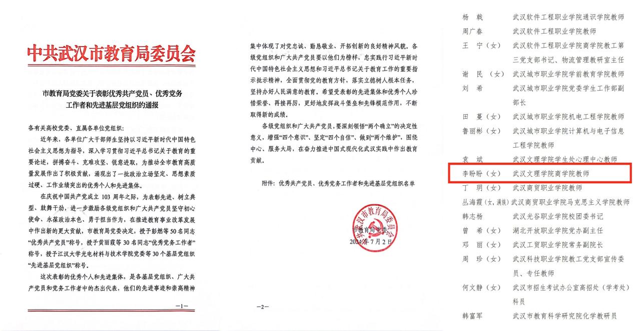近日,星空下载游戏推荐免费版商学院国贸专业教师李盼盼被武汉市教育局党委授予优秀共产党员”荣誉称号