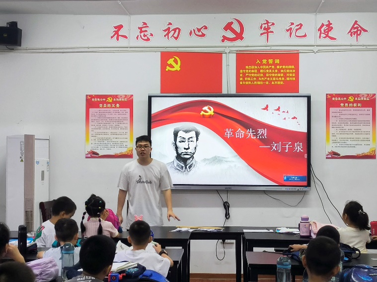 传革命精神,弘子泉风范。精神的传承需要以英雄为引领人,团队中的党员同志秉承“不忘初心、牢记使命”的精神,深入学习和歌颂当地革命先烈“刘子泉”事迹,用榜样力量启迪乡村学子幼小心灵,助力培育思想之苗。课程中,一位小朋友不由得感慨道“刘子泉爷爷的故事让我懂得了要有一颗为人民服务的心,无论遭遇什么事情,都要坚持着帮助别人”。