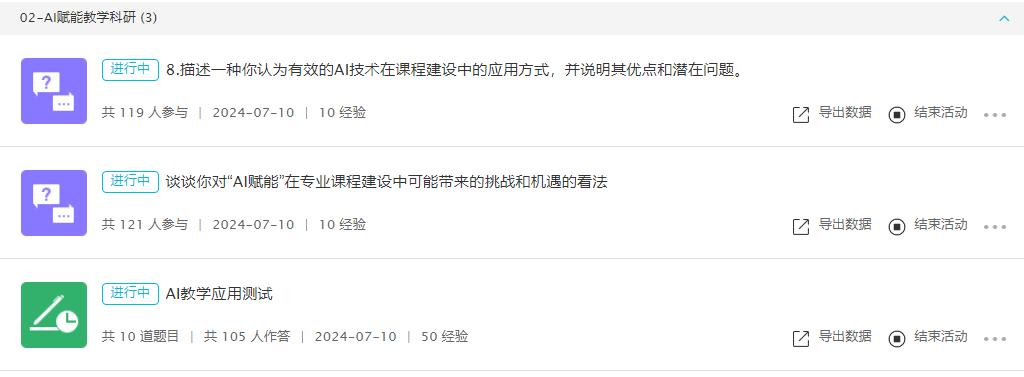 为了进一步提升培训效果,教务处利用云班课平台,开展了专项在线讨论和测试。教师们积极参与讨论和测试,纷纷分享自己的学习心得和体会。通过在线讨论和测试的形式,教师们不仅巩固了所学知识,还加深了对AI技术在教育教学中的理解和应用。