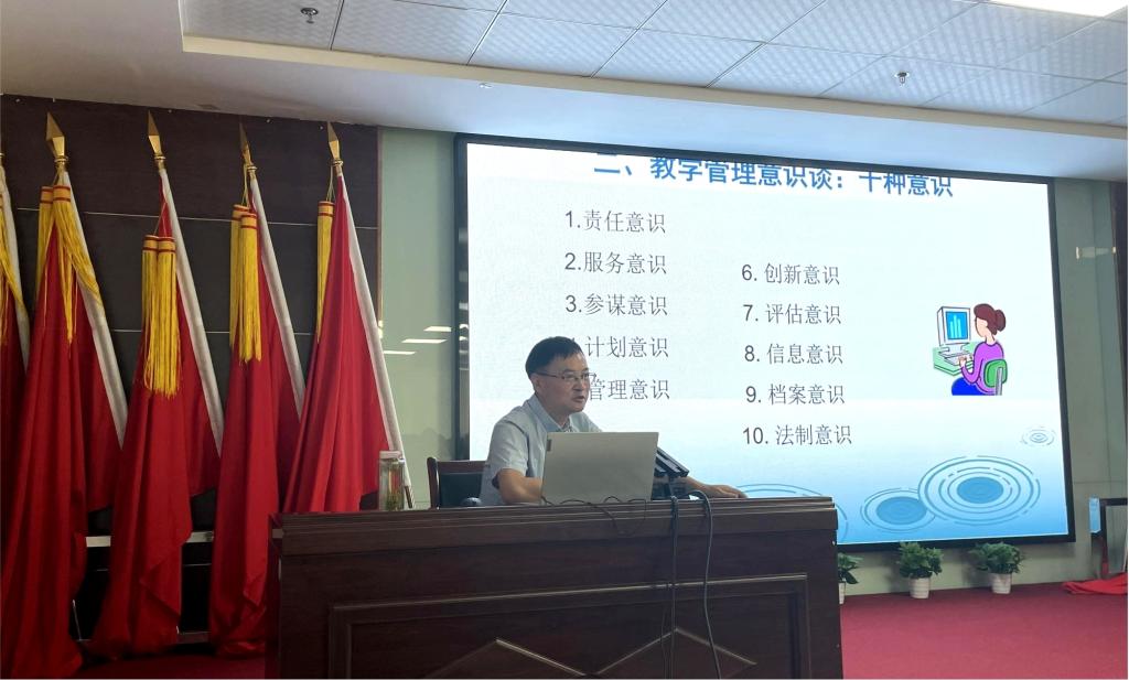 颜海进一步从重要教学管理工作的探究、教学管理人员如何撰写报告和论文以及教学管理发展趋势等方面,深入探讨了教学管理工作在提升学术科研能力方面的重要性及其实践路径。他的精彩讲座以其深邃的洞察力和丰富的实践经验,为与会人员带来了宝贵的启示和指导。