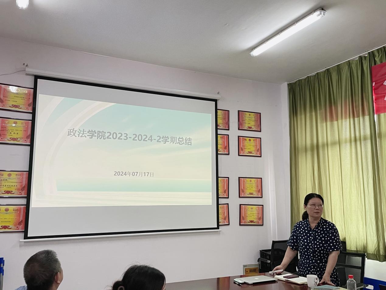 政法学院副院长陈海峰副教授作《思想引领 共谱新篇——政法学院2023-2024-2学期期末总结大会》培训讲座。