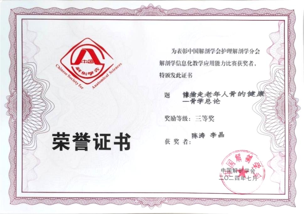 三项获奖作品都和“脊柱”有关,也提示解剖学是基础医学中的重要课程。未来,医学院基础医学院解剖组胚教研室将再接再厉,践行立德树人的教育初心,培养更多的优秀学生走出学校,赢得更多的学科竞赛荣誉,为培养优秀医学人才打下坚实的基础。