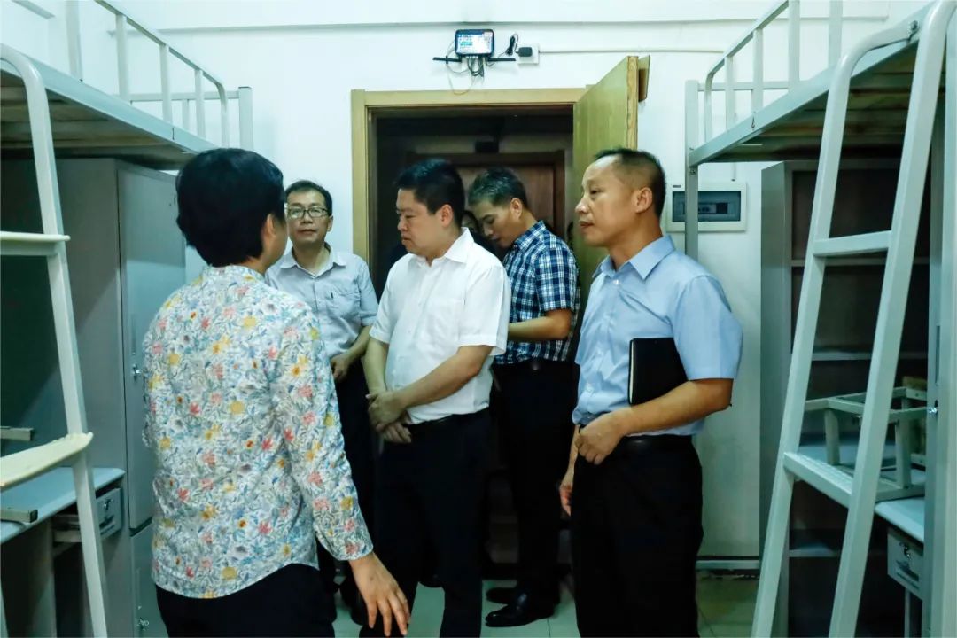 市教育局领导在会上听取了学校关于新学期开学准备工作的详细汇报,随后一同深入校园,走进学校食堂、学生宿舍、实验室以及监控室等关键区域,对学校后勤保障、校园安全、教学条件、教学管理等方面进行了全面细致检查。