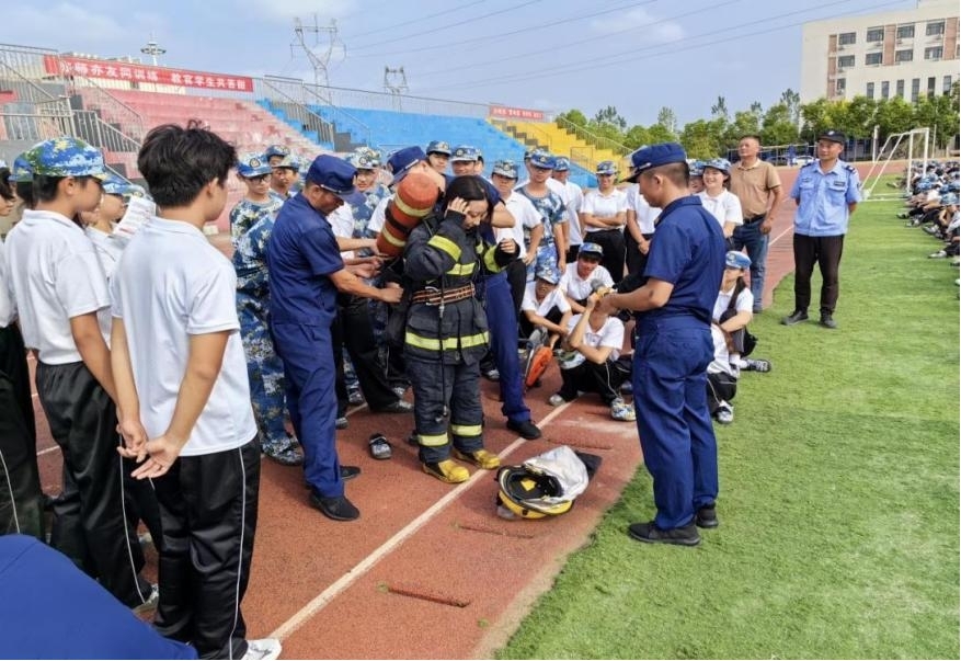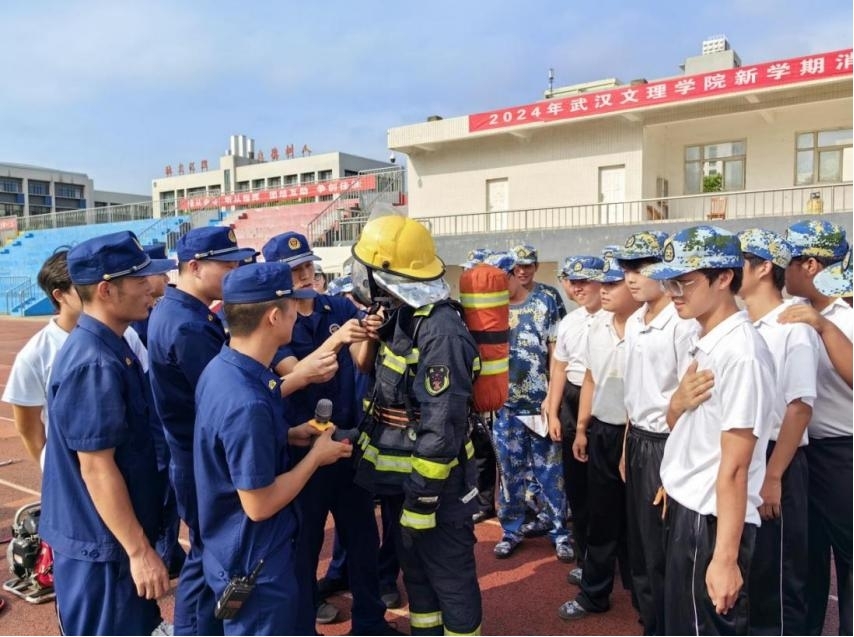 活动伊始,消防队员为新生们讲解了灭火器材使用规范以及火灾分类、预防措施、逃生方法等消防知识,并现场演示了如何应对厨房煤气罐起火的紧急情况。同学们积极参与现场互动,通过试穿消防员的灭火作战服,深刻体会到了消防队员们的艰辛和英勇。