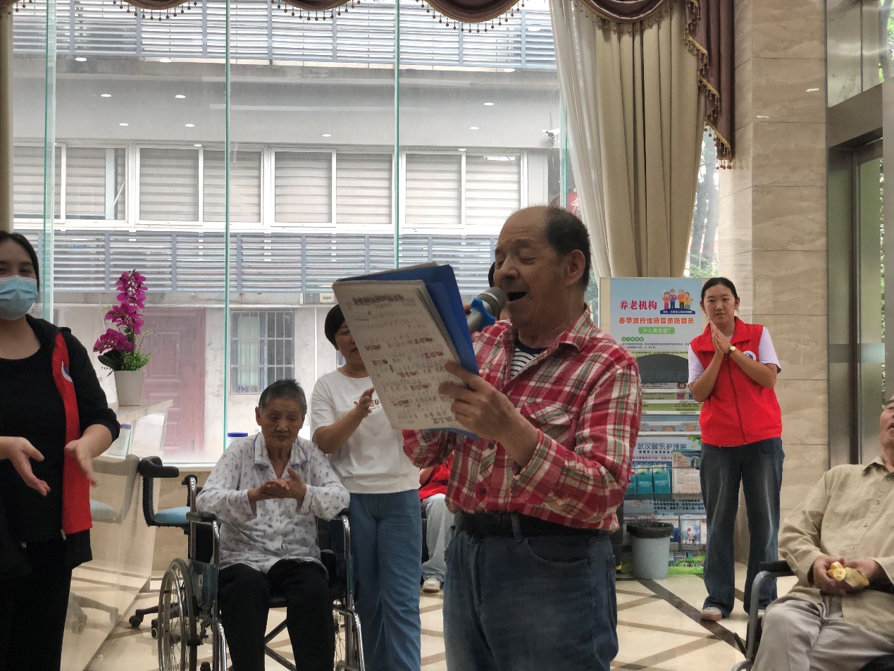 随后,志愿者与护理院午间活动的老人们热情交谈,并倾听他们讲述往昔岁月的故事与生活的智慧。为了增添欢乐的氛围,志愿者们精心准备了舞蹈、歌曲等表演,以青春活力感染着在场的每一个人,老人们也纷纷加入其中,尽情展示着各自的文艺才华。