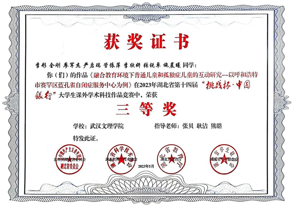 在蓝孔雀自闭症服务中心,李彤作为影子教师与国际认证副行为分析师一同研究融合教育环境下的儿童互动。她的成果《融合教育环境下普通儿童和孤独症儿童的互动研究》不仅在“挑战杯”全国大学生课外学术科技作品竞赛中获得省级铜奖,更是在不断地拓展深化中,开发出一款适用于特殊儿童情绪变化的跟踪小程序,通过学生、家长、教师三方合理助力特殊儿童更好地融入社会。