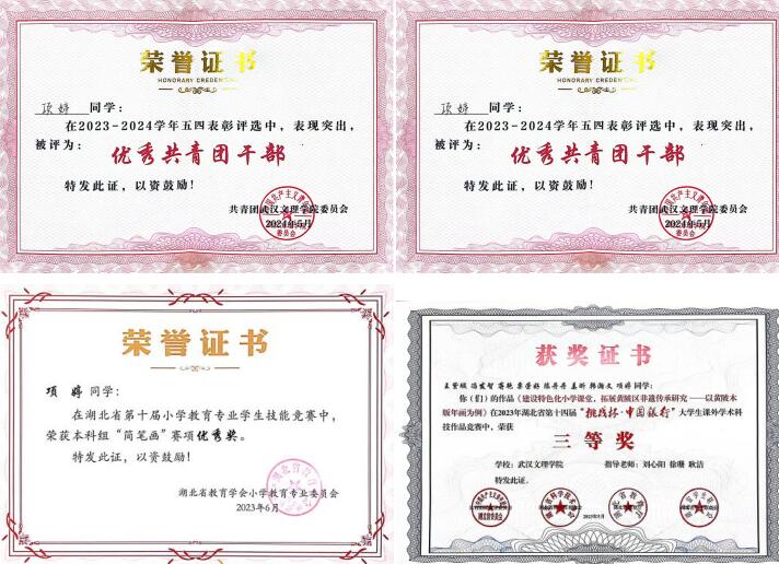 2023年6月获湖北省第十届小学教育专业技能竞赛省级奖项