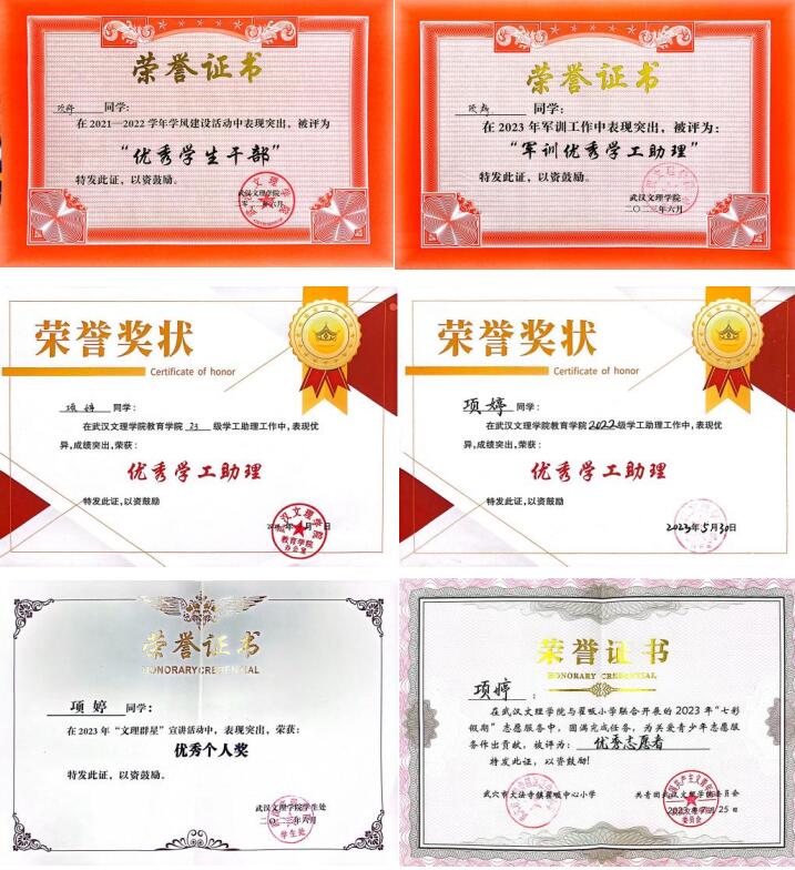 2023年6月被评为军训优秀学工助理