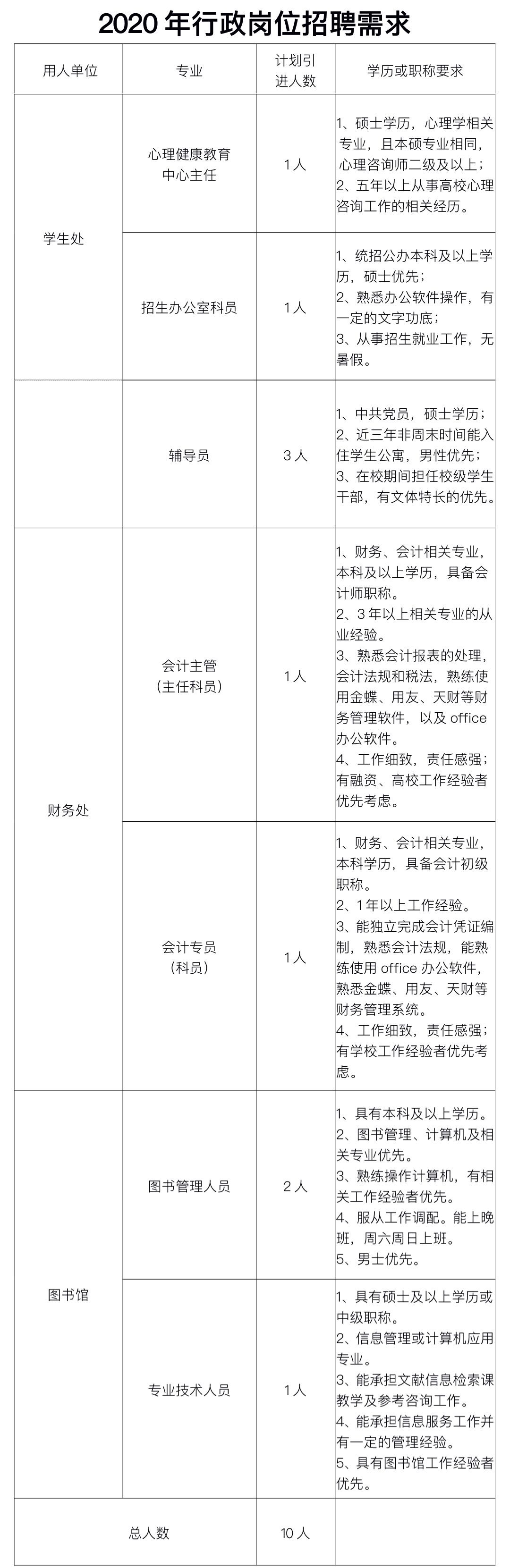 对符合要求的人才,一经录用,除工资外,学校还提供“五险一金”、过节费、年终奖等福利,提供教师公寓住房。