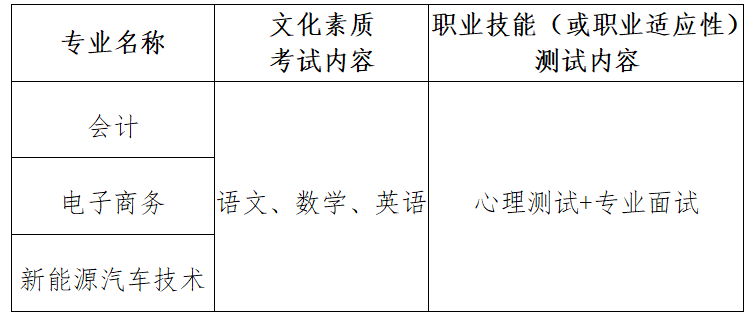 第十六条 此次高职扩招招生考试采取“文化素质+职业技能测试”的模式,具体各专业考试方式具体见下表 。