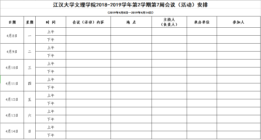 2018-2019学年第2学期第7周会议(活动)安排