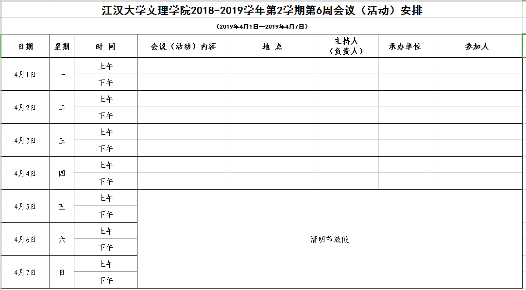 2018-2019学年第2学期第6周会议(活动)安排