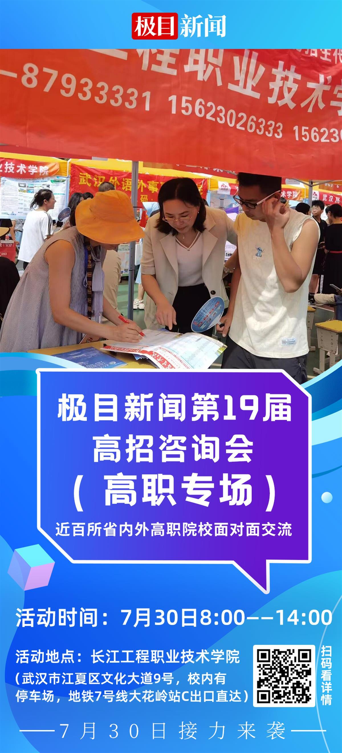 为方便考生填报志愿,7月30日8时至14时,楚天都市报极目新闻将与长江工程职业技术学院联合主办高职高专专场招生咨询会。