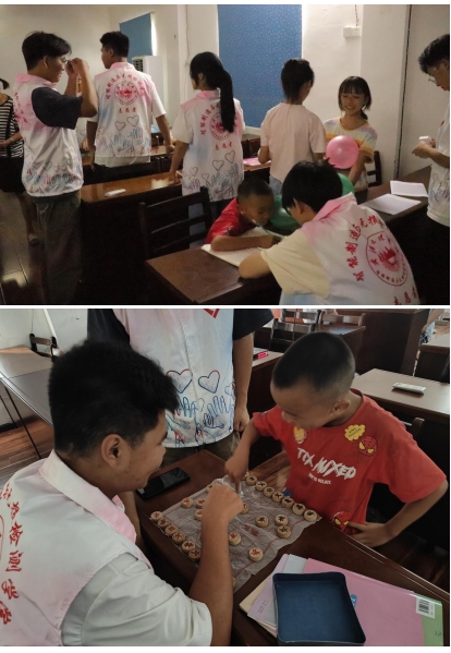 时间来到下午,村里的留守小朋友不约而同兴奋地聚集到花坪村活动室。在志愿者的精心组织下,一场别开生面的“亲子游戏会”拉开了序幕。小朋友与志愿者们一同动手拼图,智慧的火花在指尖跳跃;棋盘上,小棋手们与志愿者哥哥姐姐们对弈,每一步都透露出对知识的渴望与成长的快乐。五彩斑斓的气球在空中飞舞,孩子们的笑声回荡在屋子的每个角落,久违的欢乐氛围感染着在场的每一个人。