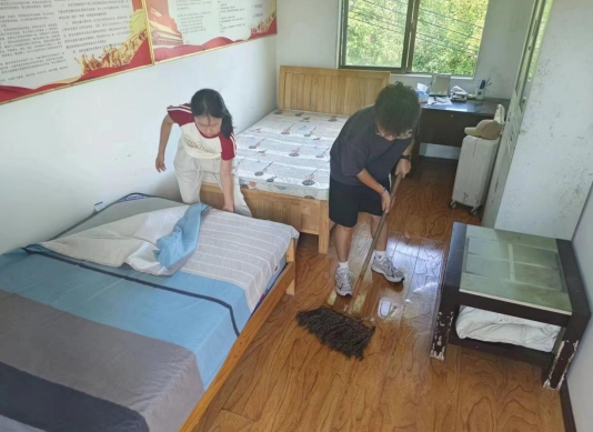 乡梦启航,青春田野绽放。7月7日,普恩志愿服务队开拔至湖北省咸宁市咸安区贺胜桥镇花坪村,这里不仅是他们社会实践的起点,更是他们成长与蜕变的舞台。抵达当天,队员们首先集结对村委会办公室及居所地进行了全面清扫。随后,带队老师韩文霞与尚上卜迅速组织了培训动员会,不仅详细讲解了此次活动的纪律、安全及注意事项,还通过分享积累的经验心得,激发了队员们服务乡村的热情与使命感,两位老师强调:“我们不仅是知识的传播者,更是情感的交流者,要用我们的真心去温暖每一位村民。”她俩的话让每一位队员深刻理解了“纸上得来终觉浅,绝知此事要躬行”的真谛。
