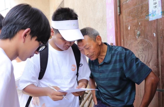 深入走访,情暖留守之心。7月8日,在村委会干部的带领下,“普恩志愿服务队”深入村户,用脚步丈量土地,用心灵感受民情。面对花坪村中普遍存在的留守老人与儿童现象,队员们没有袖手旁观,而是主动走进他们的生活,与老人们拉家常,为孩子们解心结,这一过程中队员们学会了倾听、送上了关爱,用实际行动诠释了“老吾老以及人之老,幼吾幼以及人之幼”的传统美德。在了解到具体困难后,队员们不仅提供了力所能及的帮助,还针对性地提出了改善建议。此外,还将防诈骗知识宣传融入其中,提高了老人们的自我保护意识,为老人们筑起了一道安全防线。