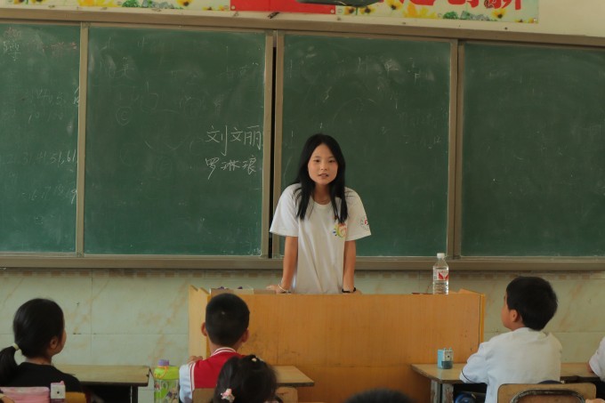 图为志愿者与学生初次见面