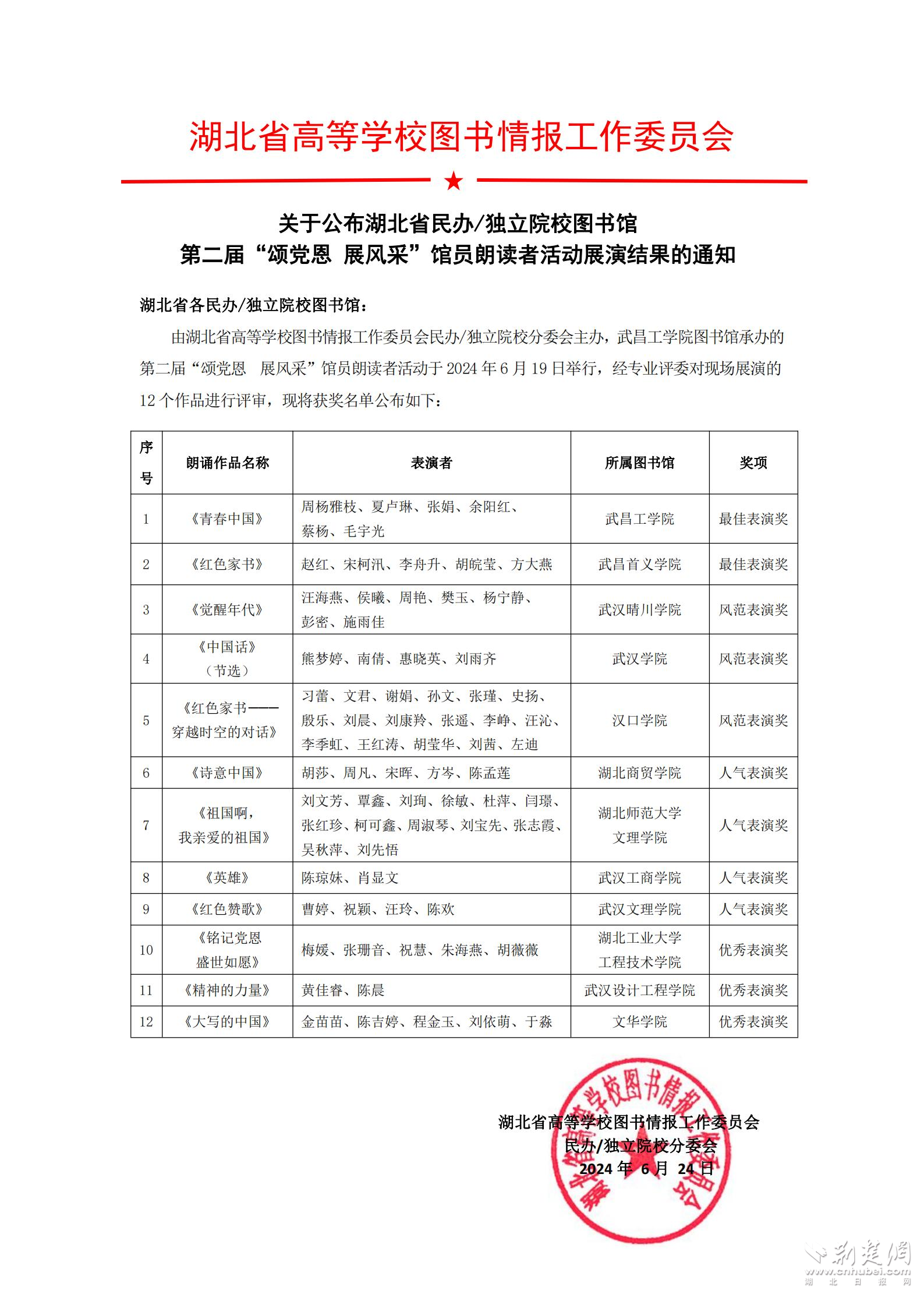 荆楚网(湖北日报网)讯(记者唐天琪 通讯员施慧丽)近日,由湖北省高校图书馆工作委员会(以下简称“图工委”)主办的“颂党恩,展风采”图书馆馆员朗读者活动在武昌工学院举行。来自14所民办高校图书馆的领导和馆员共100余人参加,全方位展示了图书馆馆员爱党爱国、爱岗敬业、自信自强、勤于探索的精神风貌。