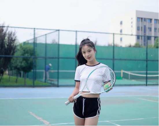 在碧绿的网球场上挥洒球拍