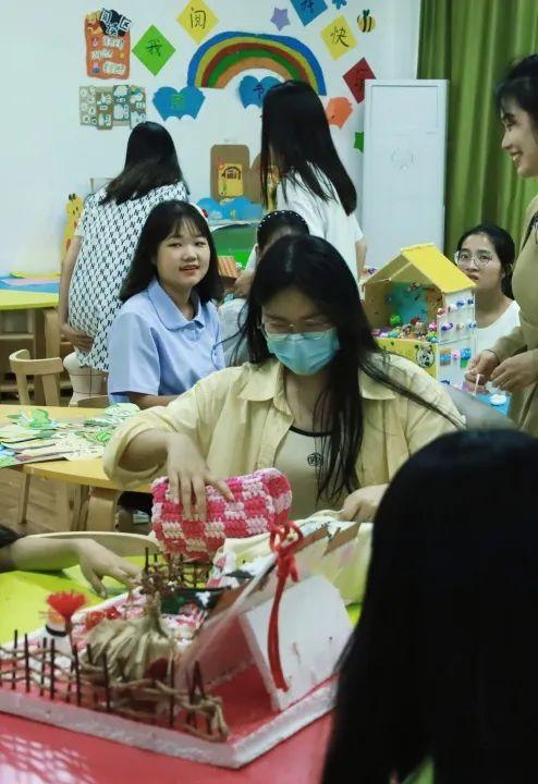 在学前教育的环境创设课堂上,除了为学生们打好环境创设系统知识体系基础,老师们还会让同学观察分析幼儿园环境创设的相关视频照片,了解幼儿园室内外环境,主题环境创设,以丰富的现实素材及案例分析,促进学生逻辑思维的提升;还会设计课程拓展模块,结合幼儿五大领域进行环境创设,让同学们创作出属于自己的“迷你”环境,激发学生自主学习兴趣,同时提高学生手工、审美等综合能力。