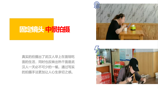 视频开篇通过用武汉话对话的形式真实表现出武汉人日常生活,从而引出拍摄主题:热干面。视频拍摄了热干面的制作过程以及武汉人在店内吃面的真实面貌,通过写实的拍摄手法更加让人心生亲切之感,体现热干面在武汉人心中举足轻重的地位,展现武汉的人文情怀。视频画面极具美感,搭配轻快音乐,颇有些《舌尖上的中国》的味道。