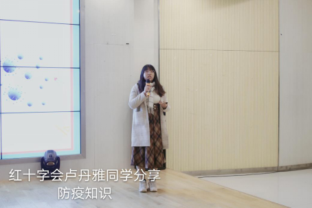 活动进入到正式培训分享阶段。首先戈丹雅同学做了《加强疫情防控共建平安校园》的主题交流。她从冠状病毒是什么以及相关症状,复学时学生防护指南,学校开学后校园疫情预防和学生疫情复学心理健康教育四个方面向大家全面详解了对新冠性肺炎病症的认知以及防护方面的措施,她用生动具体的事例和严谨的科学案例教育大家要加强疫情防控,校园安全不容有失。
