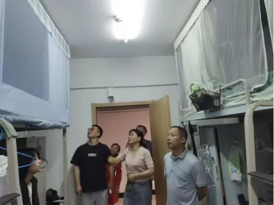 在学生宿舍,王明光详细询问了宿舍管理员日常宿舍管理中发现的问题,认真听取了学生反映较多的宿舍生活需求和建议,抽查调研了二十余间学生宿舍。王明光还亲切嘱咐学生,在寝室一定要注意用电安全。