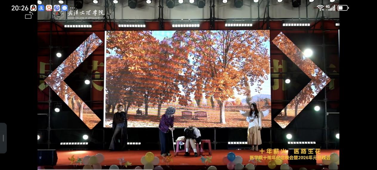 晚会以一部追忆医学院十年发展历程的宣传片---《十年,医路有你,十年,医心滚烫》拉开序幕,光影流转间,学院发展与坚守医者教育初心的故事徐徐铺展。宣传片落幕后,歌舞《美丽中国》紧随登场,灵动舞姿与嘹亮歌声瞬间点燃全场氛围。