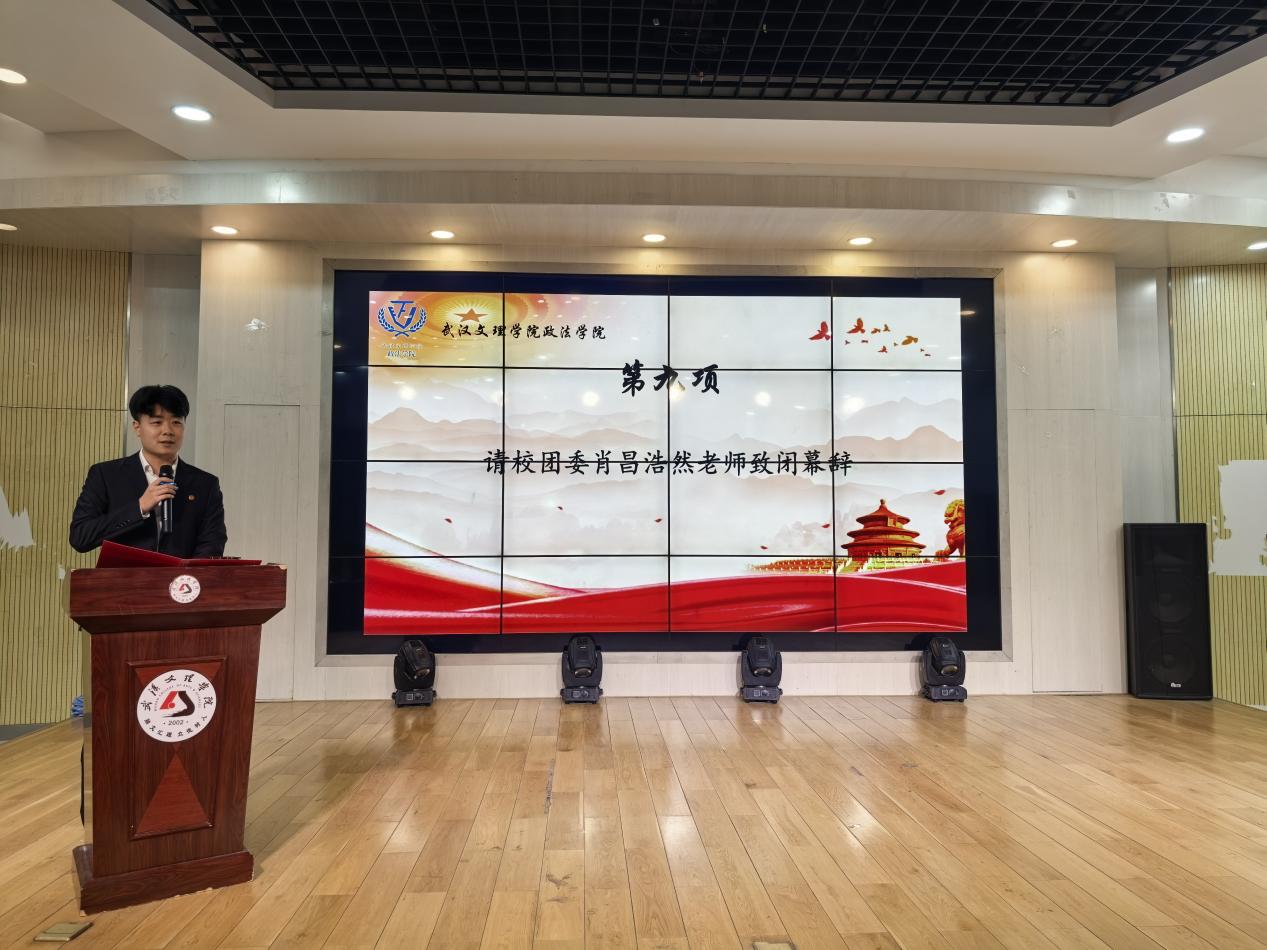 大会第九项,由校团委指导老师肖昌浩然致闭幕辞。肖老师向全体代表及工作人员的辛勤付出表示感谢。他高度评价本次大会组织周密、程序规范,展现了政法学院学生严谨务实的作风和昂扬向上的精神风貌。他对新一届学生会提出三点期望:一是牢固树立理想信念,做信念坚定的引领者;二是聚焦服务主业,做服务同学的实干家;三是勇于改革创新,做组织建设的示范者。他强调,校团委将一如既往支持政法学院学生会工作,希望各位代表积极宣传大会精神,团结带领全院青年学生落实各项任务,为建设高水平政法学院贡献智慧和力量。