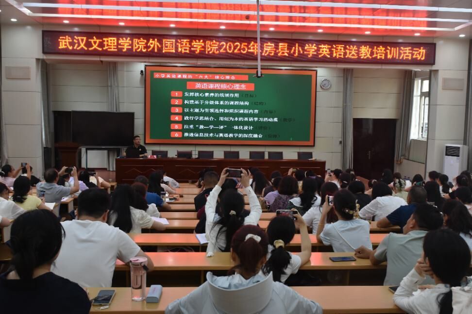 为持续推动城乡教育均衡发展,切实提升基层学校课堂教学质量,近日,星空下载游戏推荐免费版外国语学院组织骨干教师团队赴十堰房县实验小学,为当地百余名教师开展英语送教下乡培训专题活动。本次活动以“精准赋能、共促提升”为核心,通过专题讲座、示范课展示、互动研讨等多元形式,为两地教育工作者搭建了深度交流的专业平台,助力房县小学英语教学提质增效。