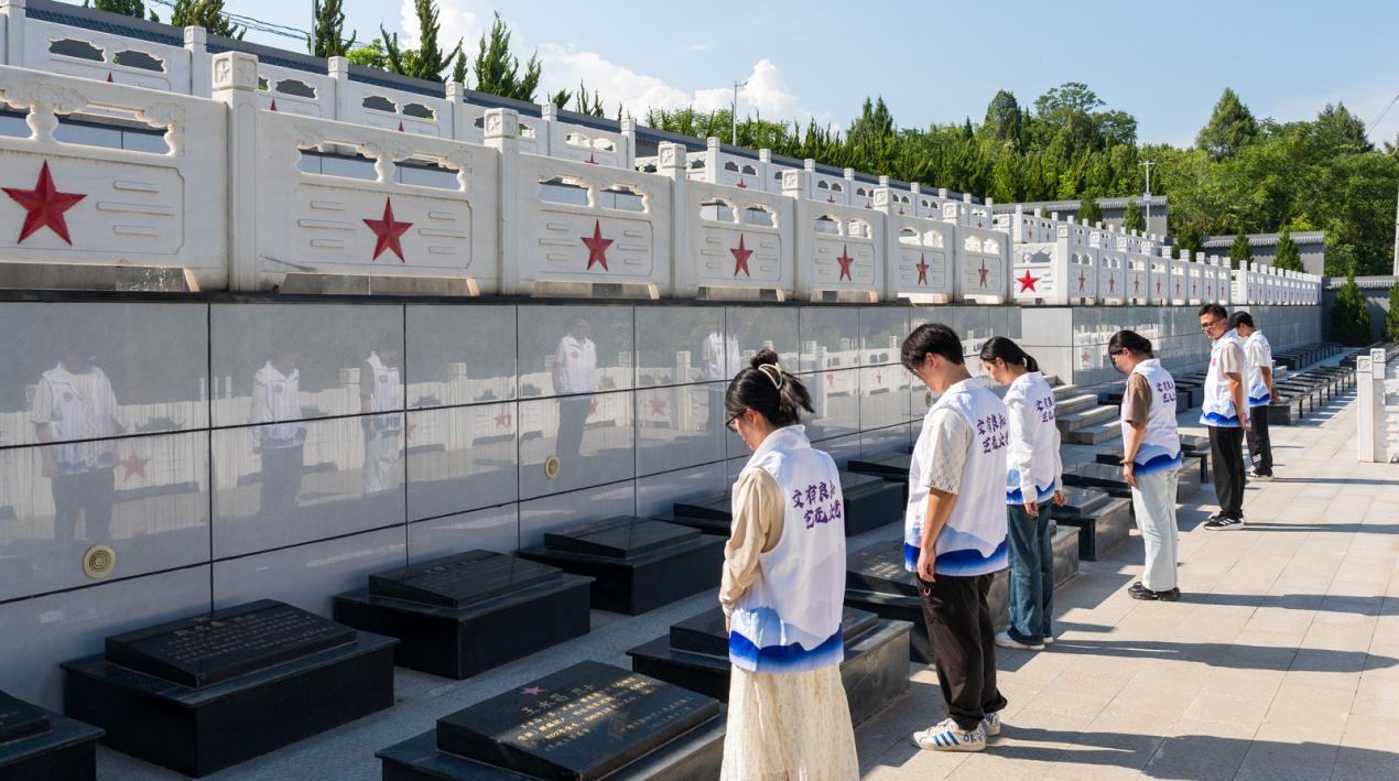 下午,志愿者们奔赴当地烈士陵园,开展祭扫活动。在庄严肃穆的烈士纪念碑前,全体人员垂首肃立,向为民族独立、人民解放事业英勇献身的先烈默哀致敬,并敬献花篮,寄托深切哀思。随后,众人缓步进入抗战展馆,凝视着一件件承载历史记忆的文物、一幅幅记录烽火岁月的图片,深刻感悟革命先辈们前赴后继、视死如归的伟大精神。志愿者们怀着崇敬之心,细致擦拭烈士墓碑,以实际行动表达对先烈的追思与敬仰。