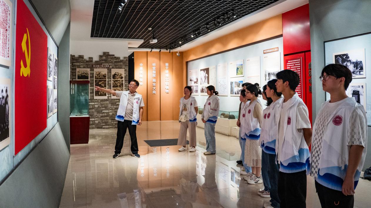 随后,众人前往郧阳革命历史展览馆。踏入馆内,仿佛瞬间穿越时空,置身于那段波澜壮阔的革命岁月。馆内丰富多样的展品,从陈旧却珍贵的革命文件,到先烈们曾使用过的简陋武器,再到栩栩如生的场景复原,全方位、多角度地展示了郧阳地区在抗战时期的艰苦斗争与英勇抗争。志愿者们认真聆听着讲解员对每一段历史故事的生动讲述,时而驻足凝视,时而低声交流,深刻体会到革命先辈们在艰难环境中不屈不挠、顽强战斗的坚定信念。通过这次参观,大家更加直观地感受到了抗战精神的伟大力量,也更加明白今天的和平生活来之不易。