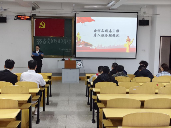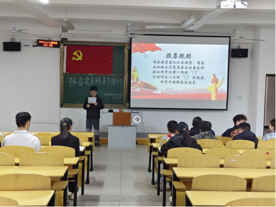 随后,五名预备党员依次登台汇报。他们围绕预备期内的思想淬炼、理论学习成效、工作实践表现及生活作风建设等方面,全面复盘成长历程,深情回顾党组织的悉心培养,深刻剖析自身在理论深度、实践能力等方面存在的不足,同时坚定表达了恪守入党初心、锤炼过硬党性、争做合格党员的决心。汇报内容真挚务实、信念坚定,展现出新时代青年党员的责任担当,赢得现场师生的阵阵掌声。