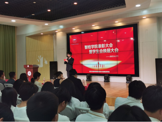 3.6月11日于19栋101配合组织智检学院表彰大会暨换届大会,各个优秀学生纷纷上台领奖与老师合照,为学生们树立榜样,激励着每个人。