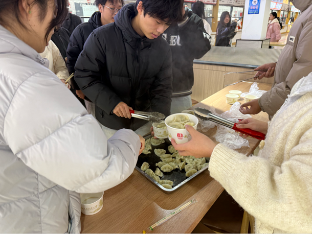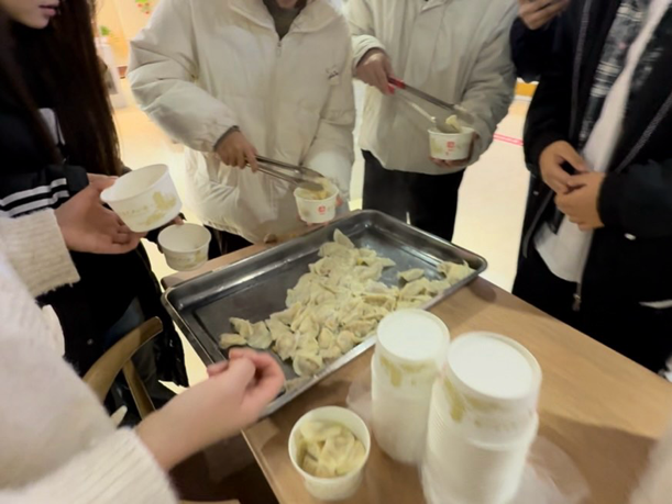 随着饺子陆续下锅煮熟,热气伴着香气弥漫满堂。大家围坐共享美食,聊着天南海北的冬至习俗,冬日的清寒仿佛被这份热闹与温暖悄然化开。来自各地的学子在此感受“此心安处是吾乡”的归属,更真切体会到学院“办有温度的教育”的育人情怀。