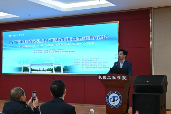 湖北工业大学副校长宋小春致开幕词,他希望,湖北省内各高校无损检测方向的师生以此论坛为契机,加强高校间的学术交流和学科共建,争取吸纳更多的高校和师生参与,不断扩大论坛影响力,力争将该论坛打造成全国无损检测技术创新和成果交流的高质量平台。